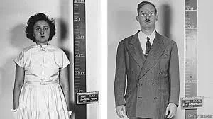 Ethel and Julius Rosenberg stand for mug shots in 1950
